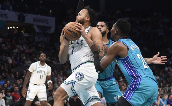 籃球直播吧12月2日訊 NBA常規(guī)賽,客場作戰(zhàn)的明尼蘇達(dá)森林狼以123-117擊敗夏洛特黃蜂,森林狼取得4連勝。戈貝爾26分12籃板1助攻,羅齊爾23分6籃板7助攻。